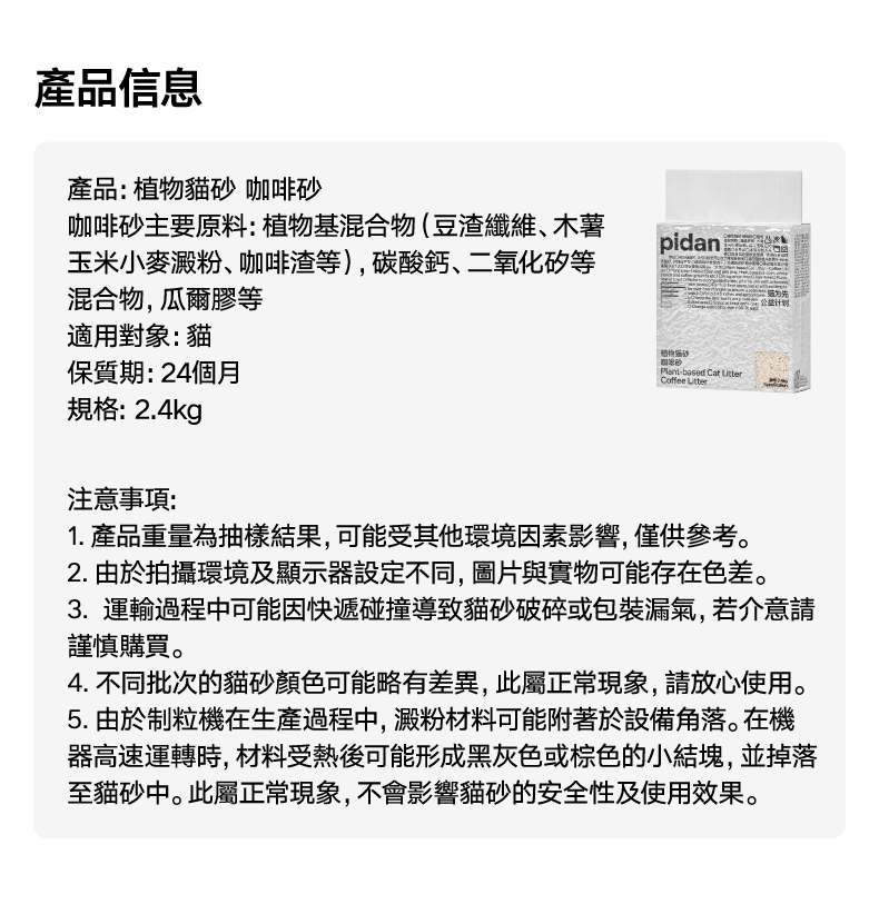 4.不同批次的貓砂顏色可能略有差異,屬正常現象,請安心使用。